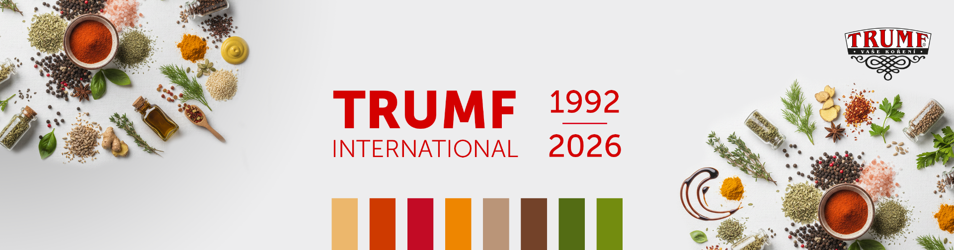 TRUMF International s.r.o. se zaměřuje na vývoj, výrobu a prodej koření, směsí koření, kořenících přípravků a ingrediencí pro potravinářství. Koření a směsi koření pod značkou TRUMF jsou vyváženy do mnoha zemí střední, východní Evropy a Asie.
